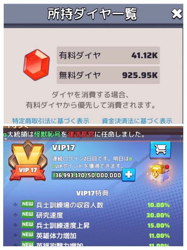 【VIP17】1軍96M 課金4,500万...