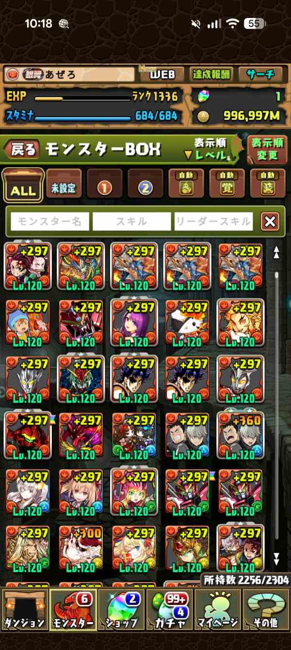 課金額300万以上。グランエルブ、ウルトナ2、コラボキャラ多数。
