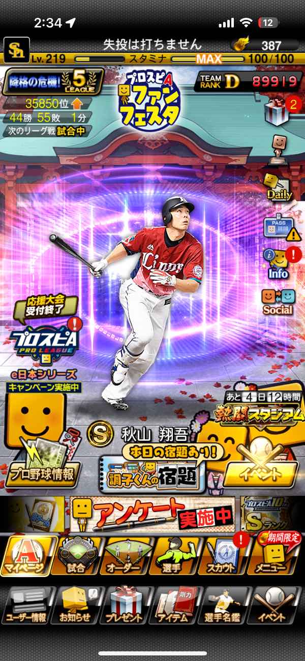 プロスピホークス純正最強垢