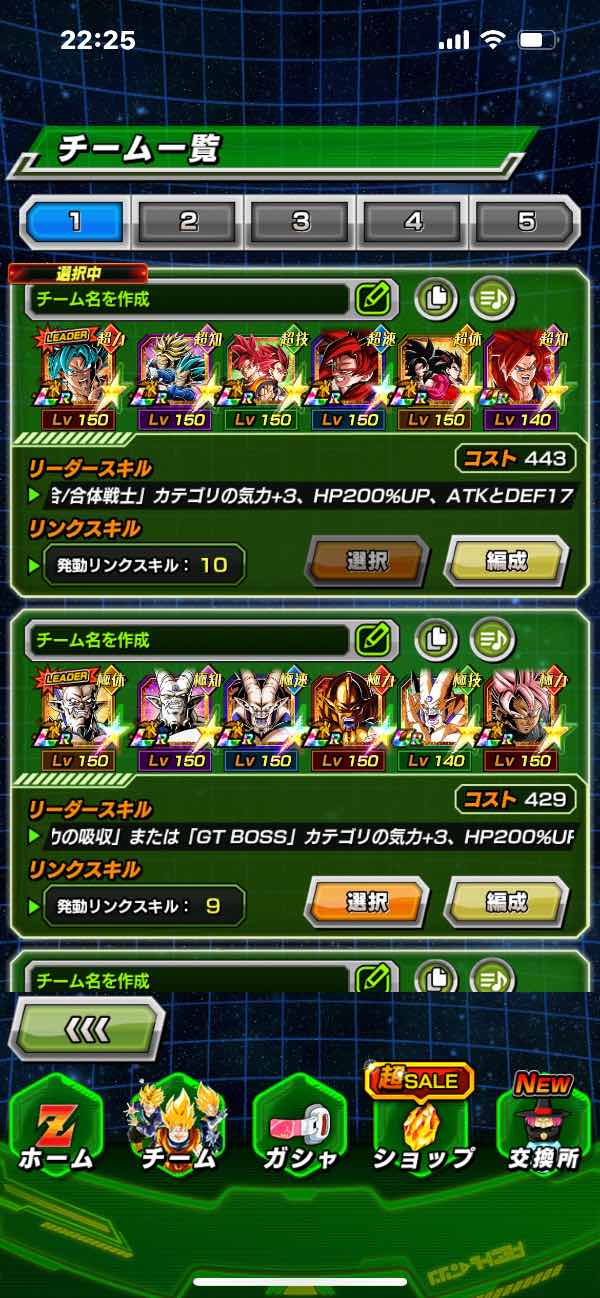 ロゼ無凸、悟空2凸、超一星龍完凸、ゴジータ完凸、悟飯無凸