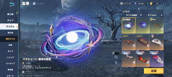 パラシュート 銀河の旋回