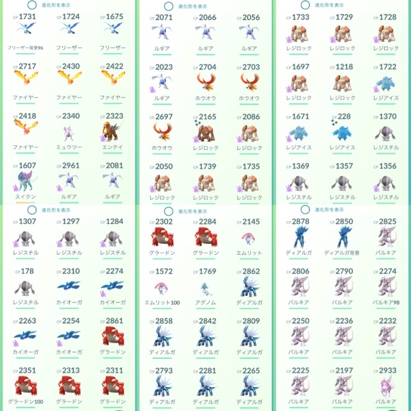 ポケモンGO TL47伝説個体値100:グラードン!色違いザシアン剣の王!色違い199体!伝説幻262体所持|マツブシマーケット