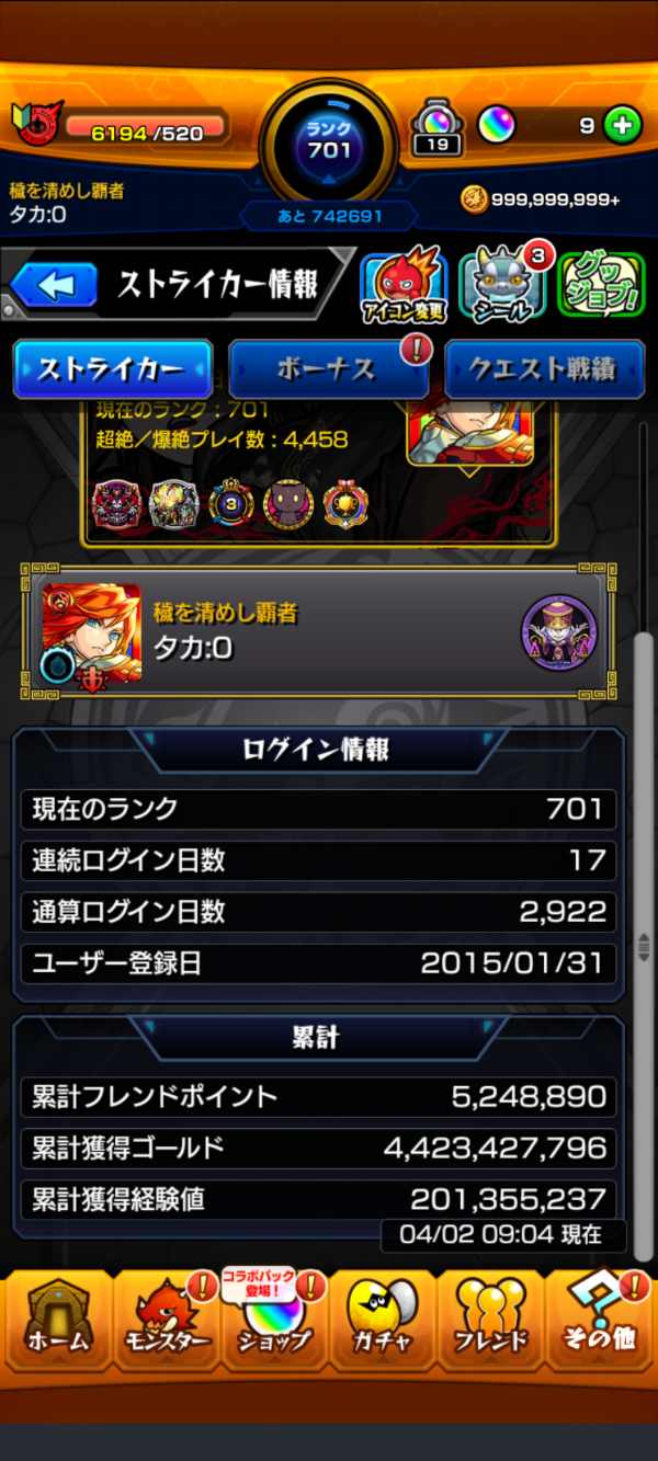 ☆星6ガチャ限1200体 運極数1300...