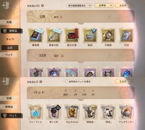 UR衣装38種。限定11着。ID7桁。...