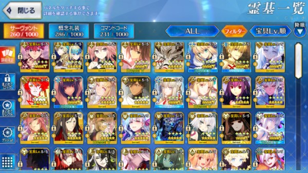 ⭐︎5サバは69体、内宝具5は10体...