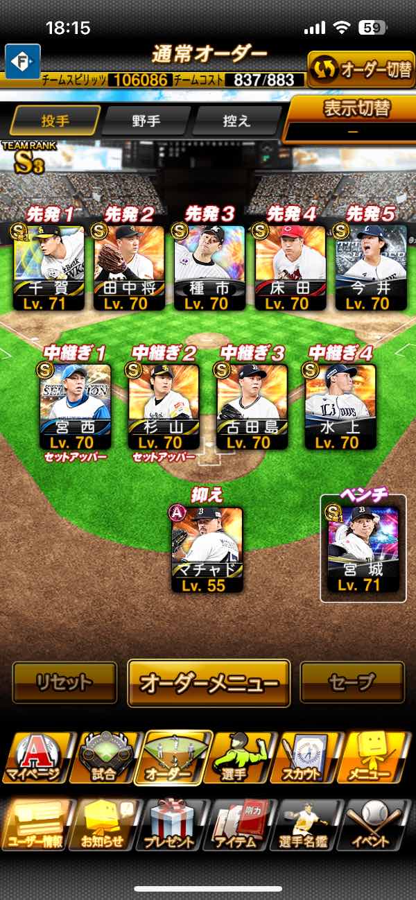 侍 投 大谷 ペタジーニ 清原 川上