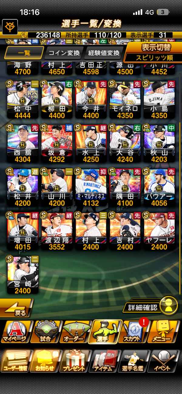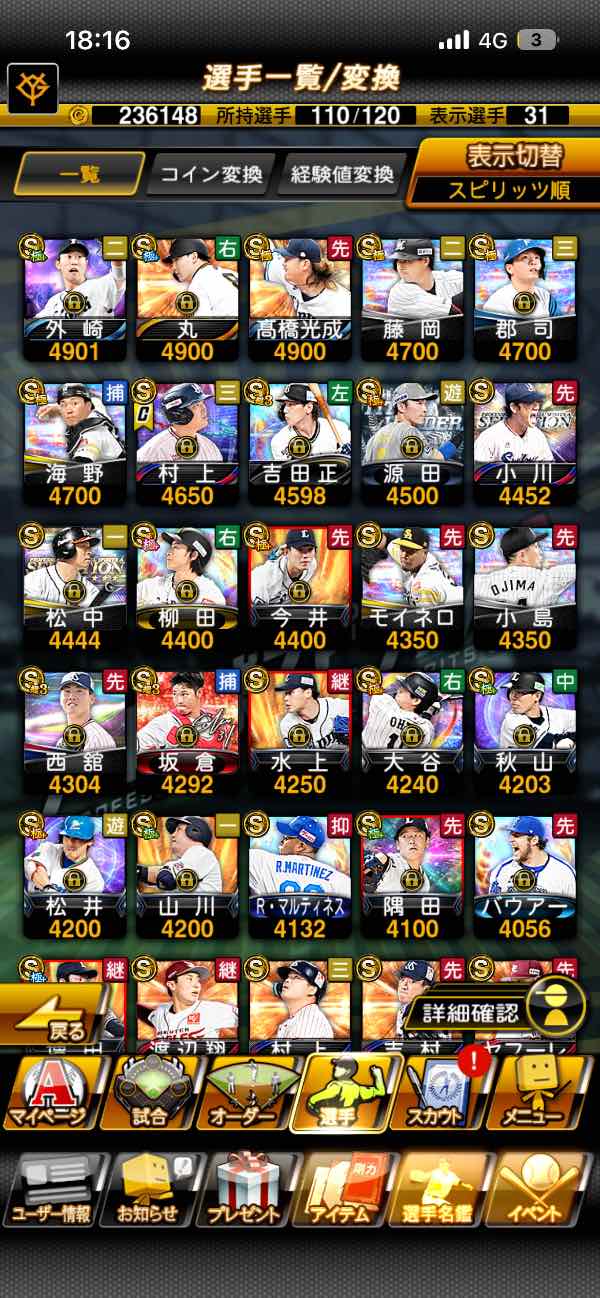 プロスピ大谷侍エナジー967個所...