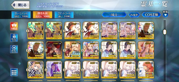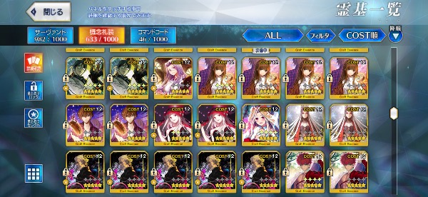 礼装もカレスコや黒の聖杯は所持しております。