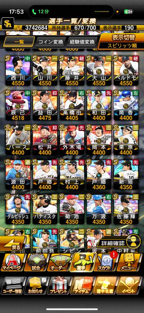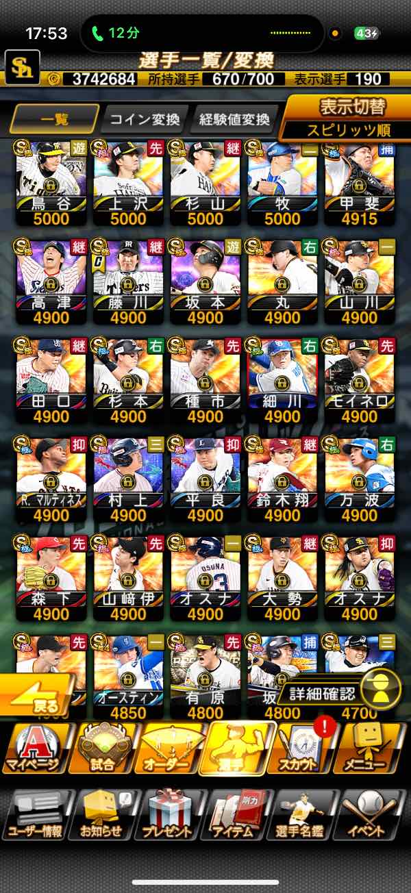 大谷翔平、極、覇王、柳田悠岐 ダルビッシュ有 山田哲人 鈴木誠也 中村剛也 岡本和真 吉田正尚 菅野智之 大谷翔平 森友哉 浅村栄斗 山川穂高 源田壮亮 菊池涼介 小林誠司 坂本勇人 山崎康晃 山本由伸 松井裕樹 藤は川球児 森唯斗 栗林良使  平良海馬 バレンティン ロペス レアード アルモンテ ソト モイネロ ウィーラー 岸孝之 中崎翔太 高橋周平 大瀬良大地 山岡泰輔 近本光司 村上宗隆 伊藤大海 中村紀洋 大谷翔平、リボン、覇王、巨人、阪神、エナジー、SS、ダルビッシュ、イチロー、極、TS、WS、初期垢、セレクション、覇王、最強、純正、イチロー、ギータ、中崎翔太