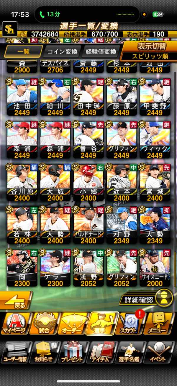 2025/11/01 プロスピA(プロ野球スピリッツA)