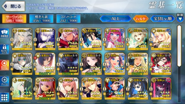 星5サーヴァントの数は累計入手数です。