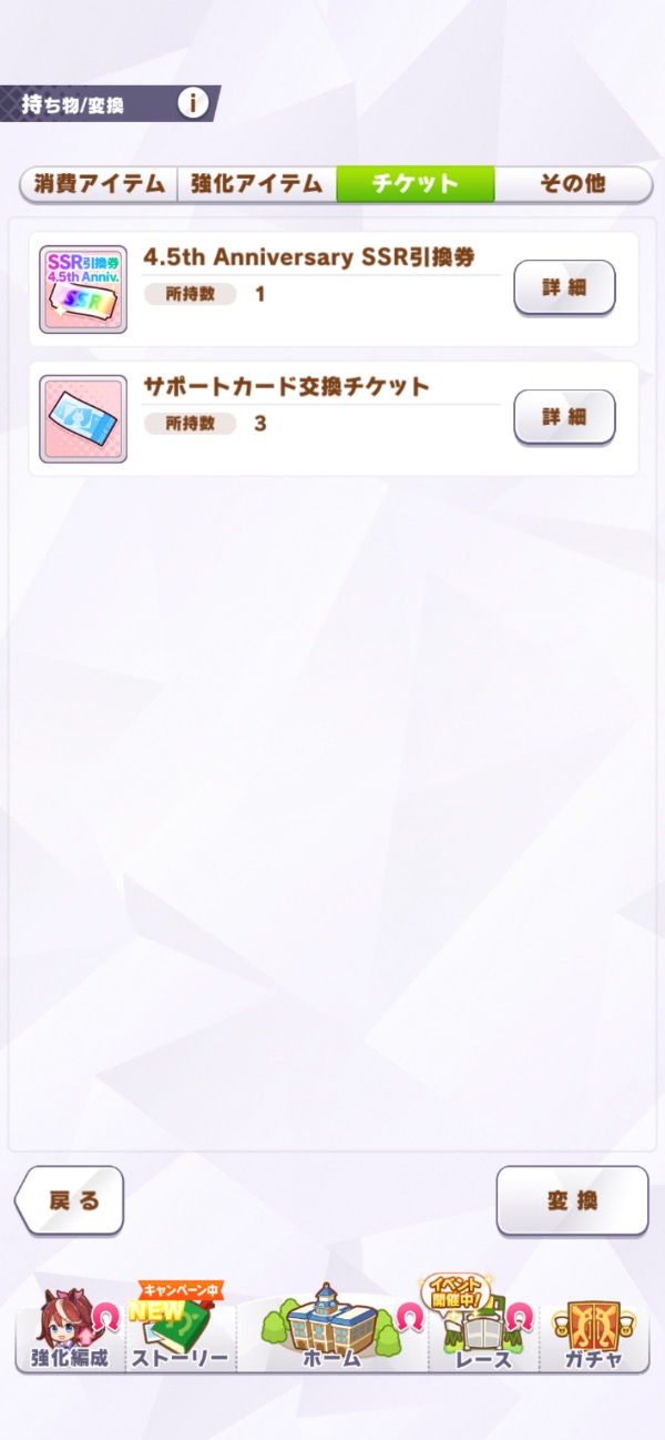 4.5周年SSRサポカ引換券1枚所持