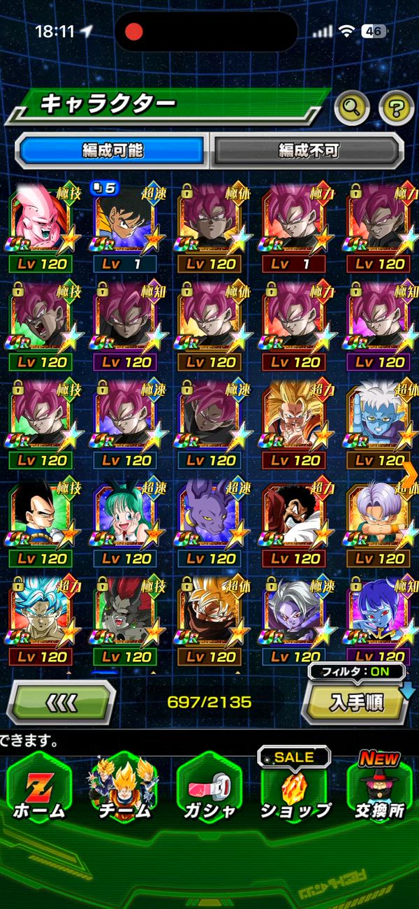 LR育成済169、未育成41のうち、LR虹凸キャラは61体です!