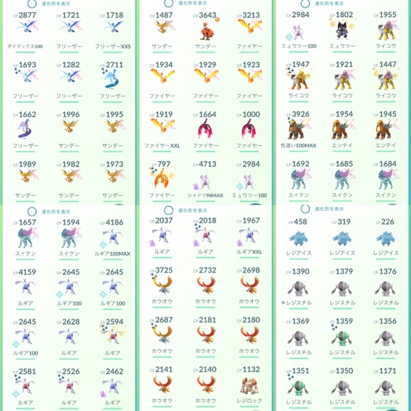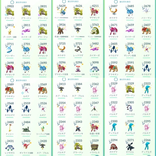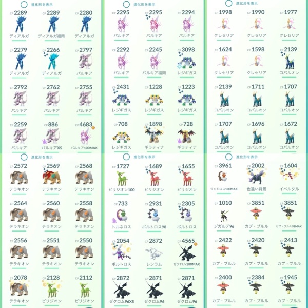 ポケモンGO レア垢TL49伝説100MAX25体!背景剣の王100MAX!伝説564体!色違い352体|マツブシマーケット