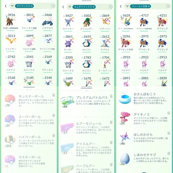 PVP用のポケモン沢山所持