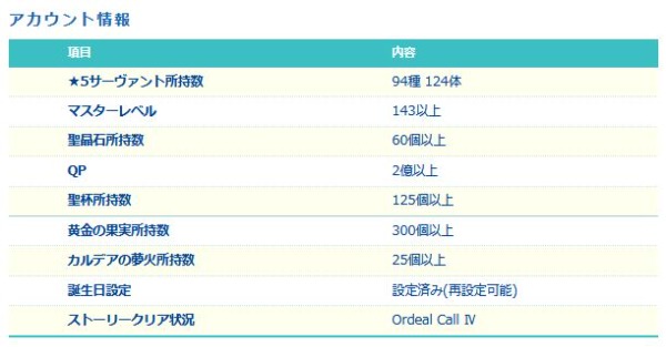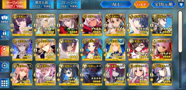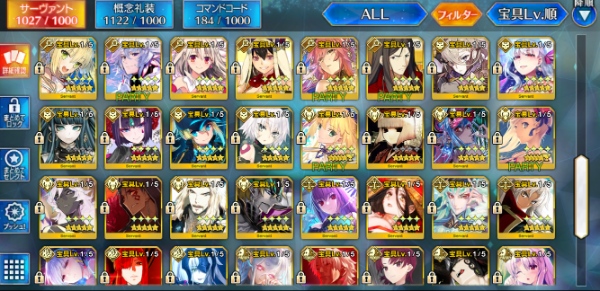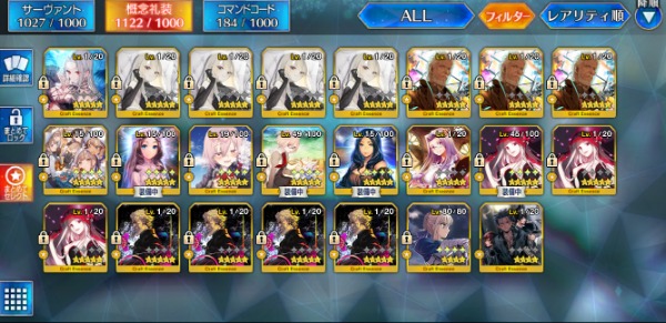 FGO-☆5×92種125体 140LVアカウント