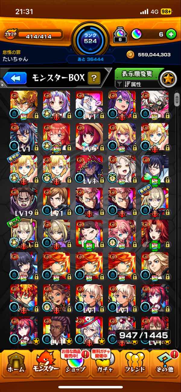 ガチャ限運極1体・轟絶運極30種...