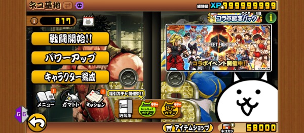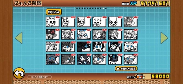 全キャラ所持、猫缶58000、xpカ...