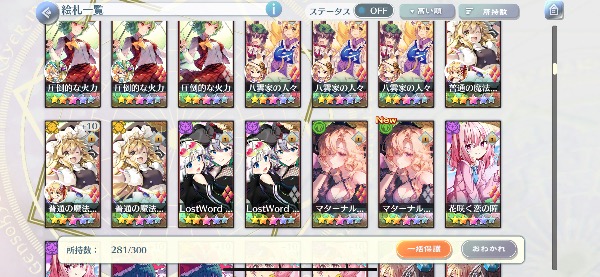 東ロワ(東方ロストワード)であなたへおすすめのアカウントデータ