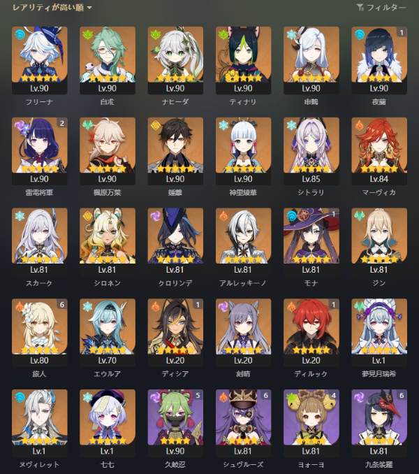 引退アカウント 星5キャラ25体