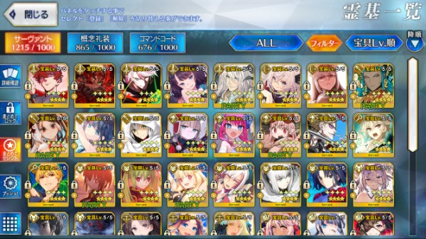 ⭐︎5サバは69体、内宝具5は10体...
