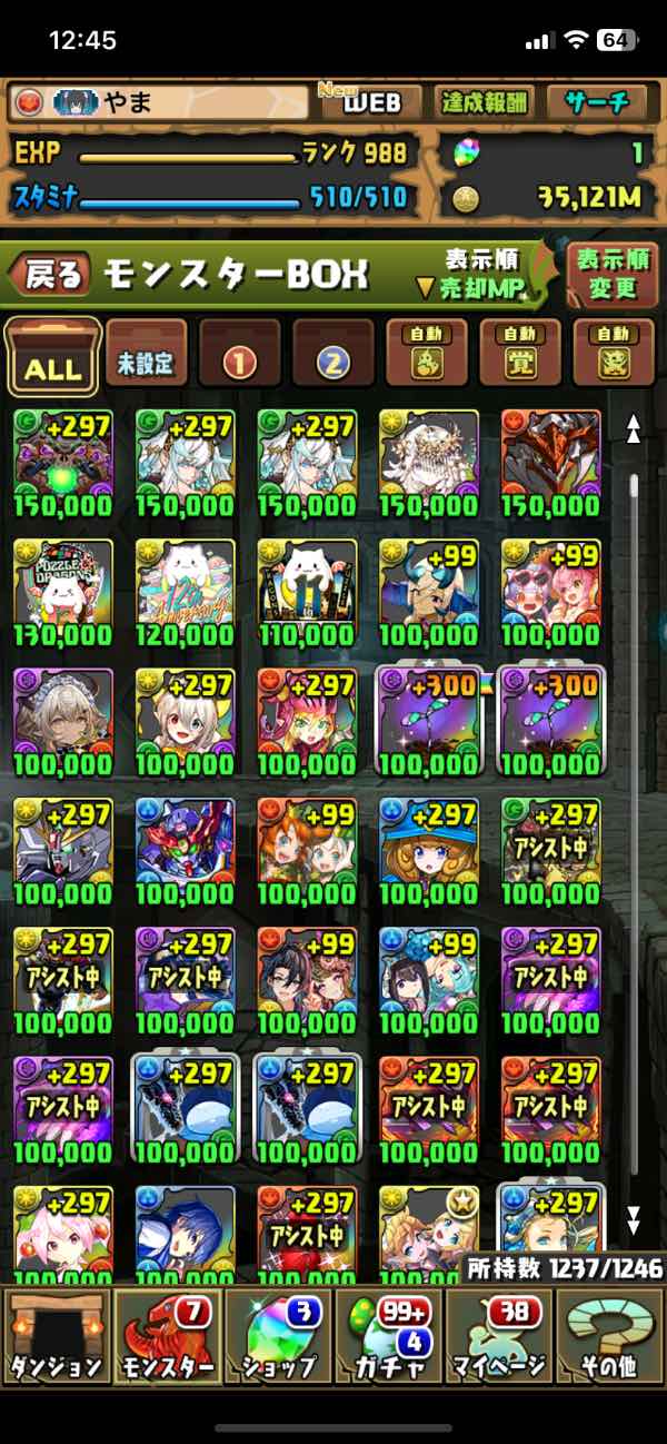 魔法石3750個+モンスター300体前後