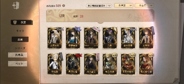 UR衣装38種。限定11着。ID7桁。...
