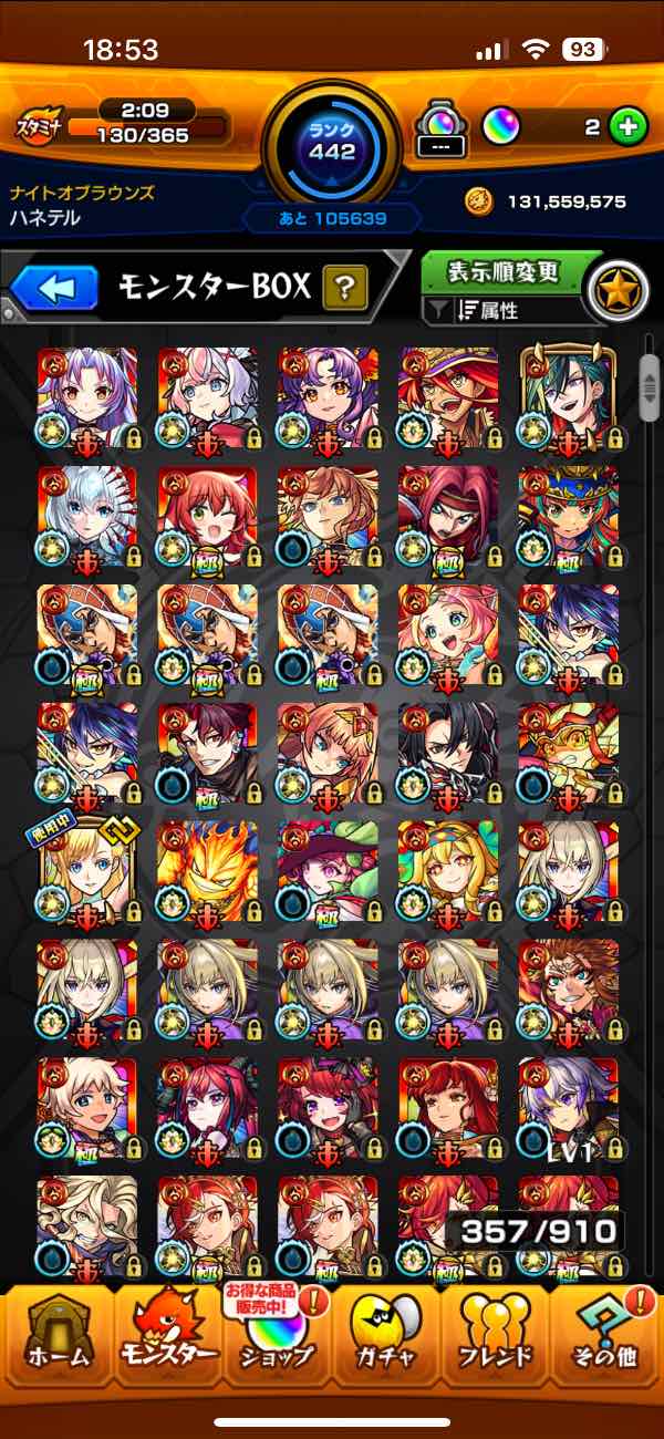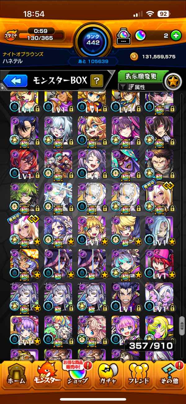 ガチャ限モンスター多数、運極多数