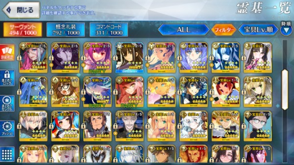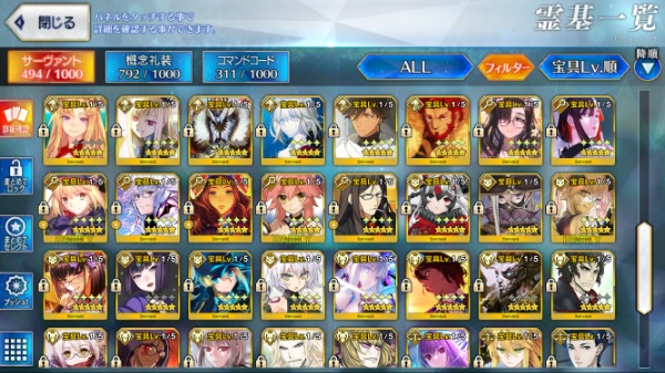 ★5 93種154体 U-オルガマリー宝具5:Lv120・水着シエル宝具5・メリュジーヌ宝具5など所持
