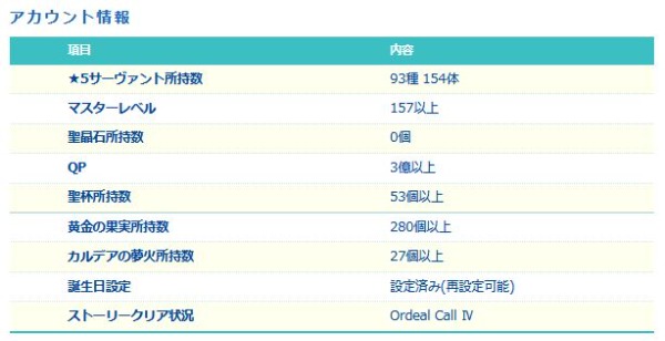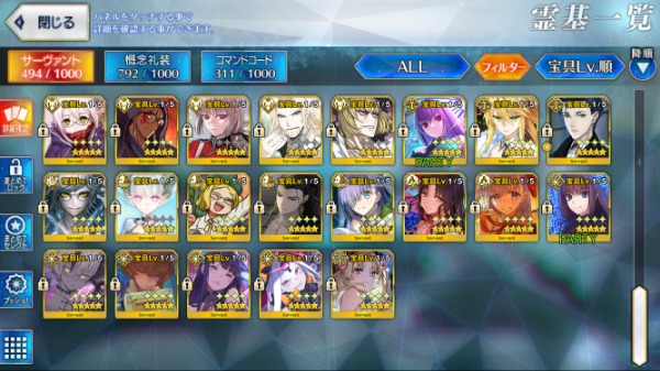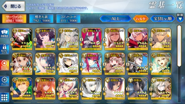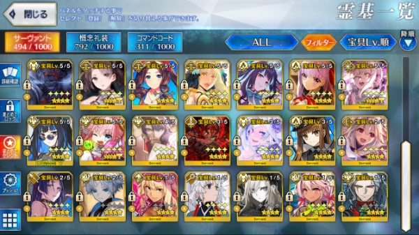星5サーヴァントの数は累計入手数です。