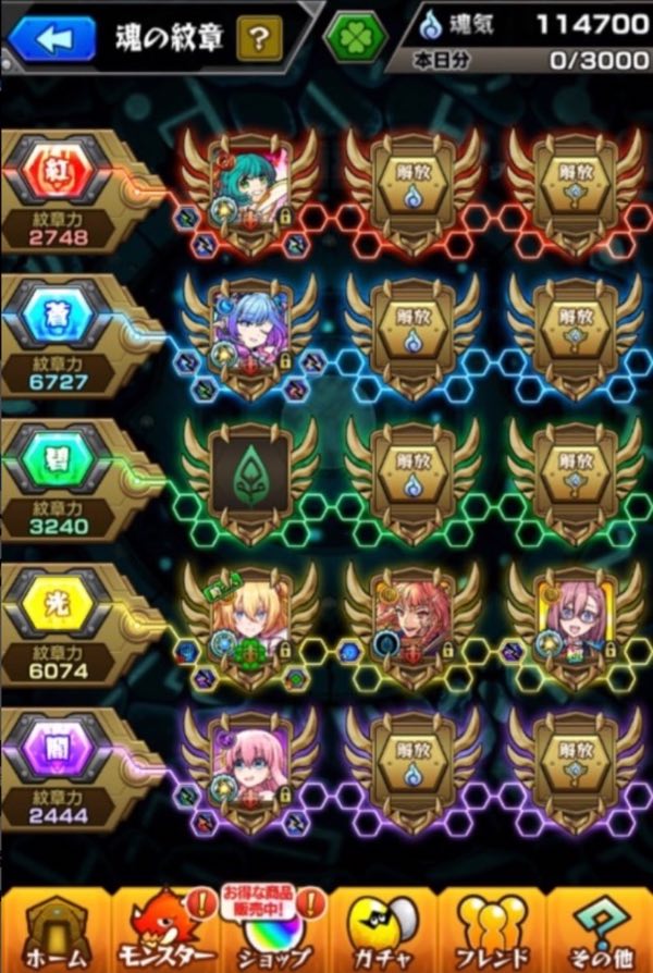 ガチャ限1600体↑紋章15000↑