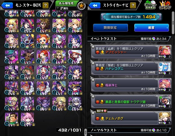ガチャ限モンスター多数、運極多数
