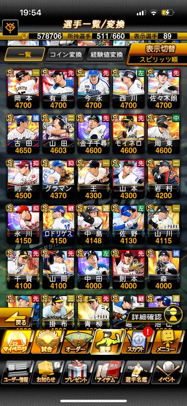 プロ野球スピリッツAゲームデータ