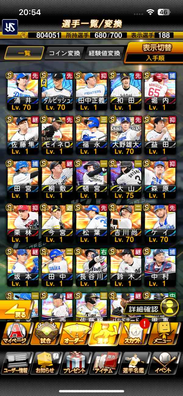 プロスピA(プロ野球スピリッツA) 新ダル。極145体。AレベルMAX1000体。鷹純正。エナ1600個|マツブシマーケット