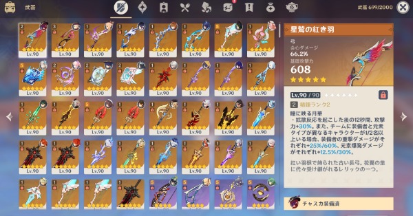 星5キャラ44体、星5武器36個所持
