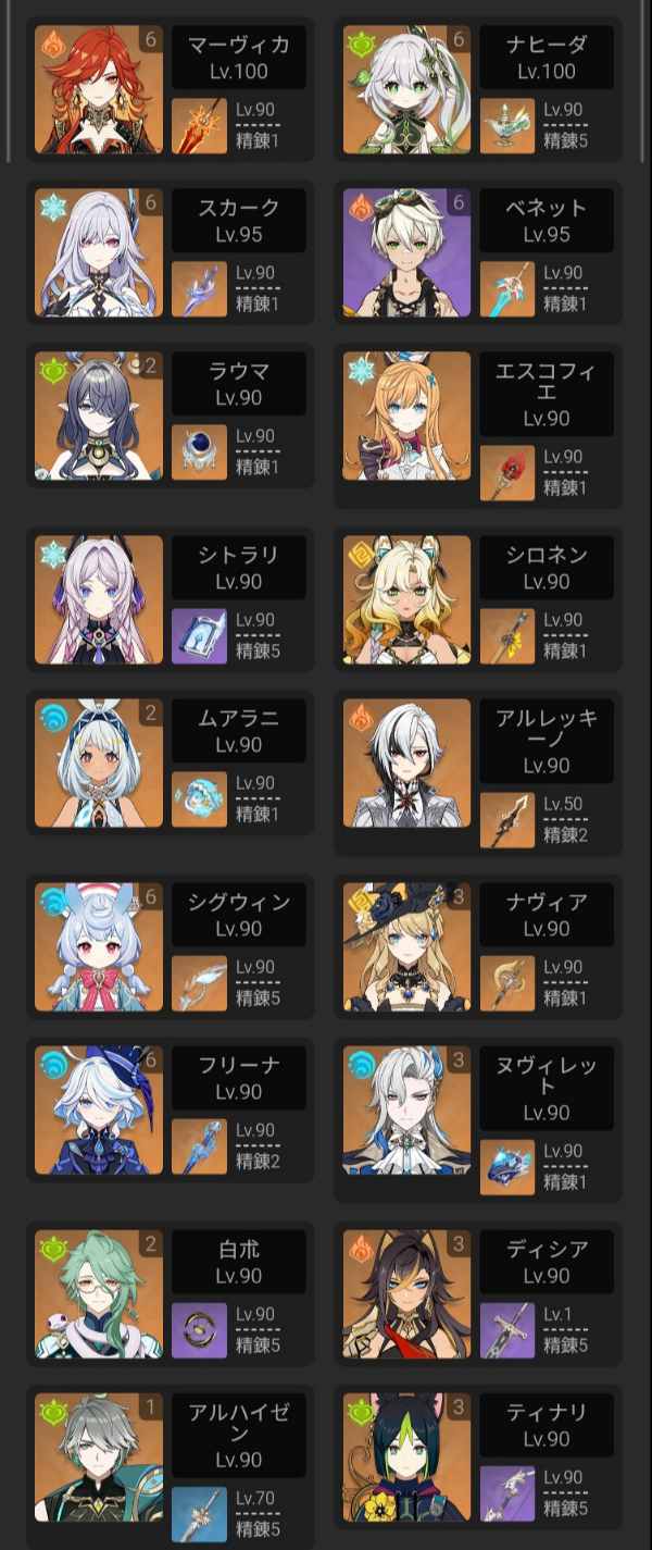 ヌヴィレット完凸、放浪者完凸...