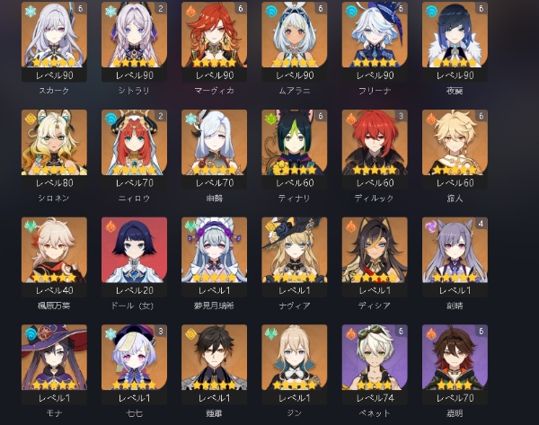 アカウント販売 複数キャラ完凸