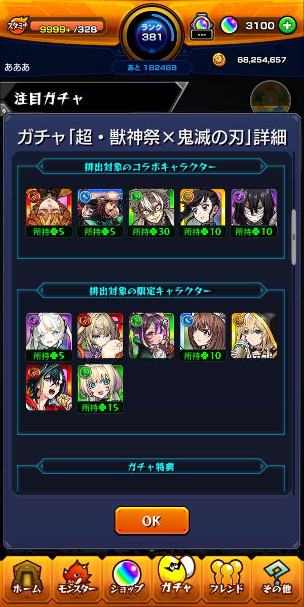 モンスト超獣神祭キャラ➕コラボ...