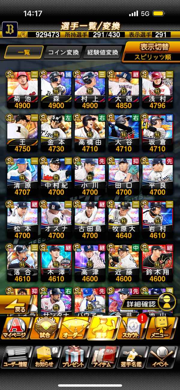 プロ野球スピリッツAゲームデータ
