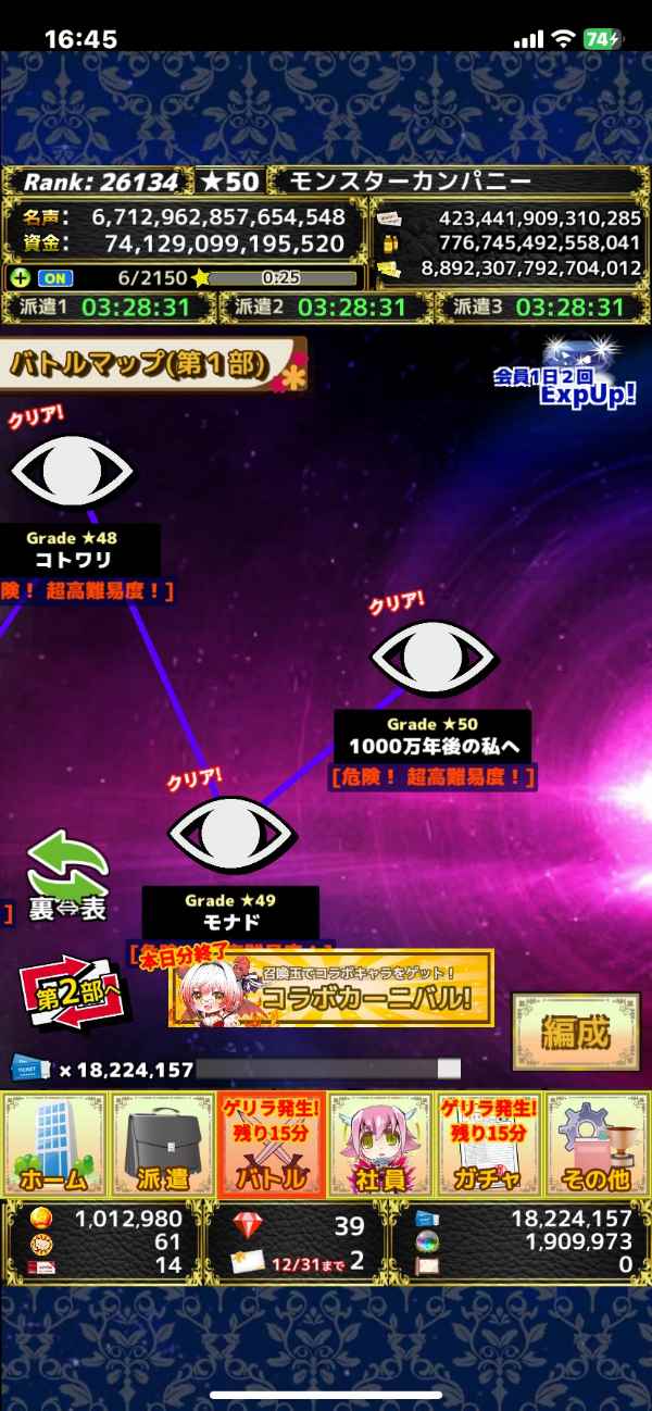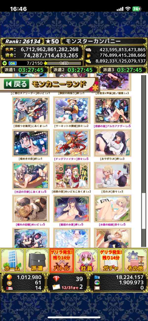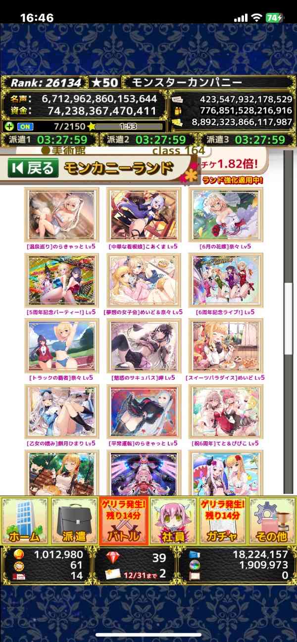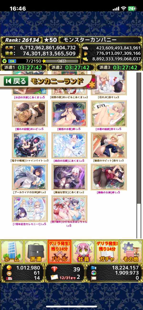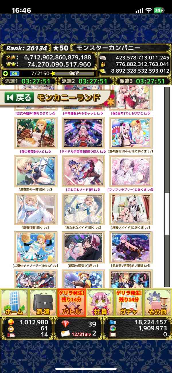 毎日プレイしていますので、進捗は画像より進んでおりますしダイヤの増減などありますのでコメントにてご確認よろしくお願いします