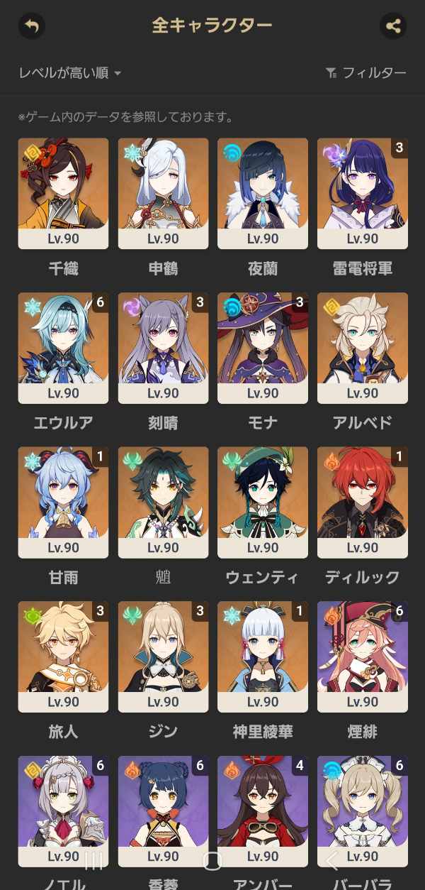 原神:星5キャラ 22体