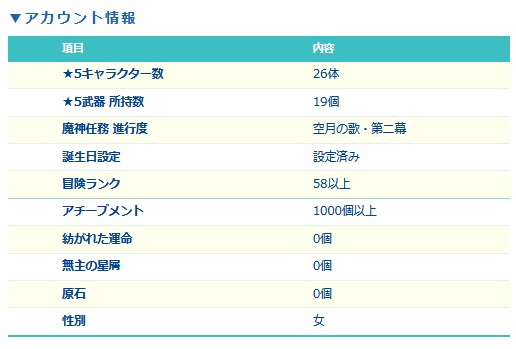 アカウント販売・完凸多数