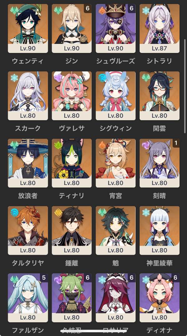 フリーナ完凸、その他星5餅武器...