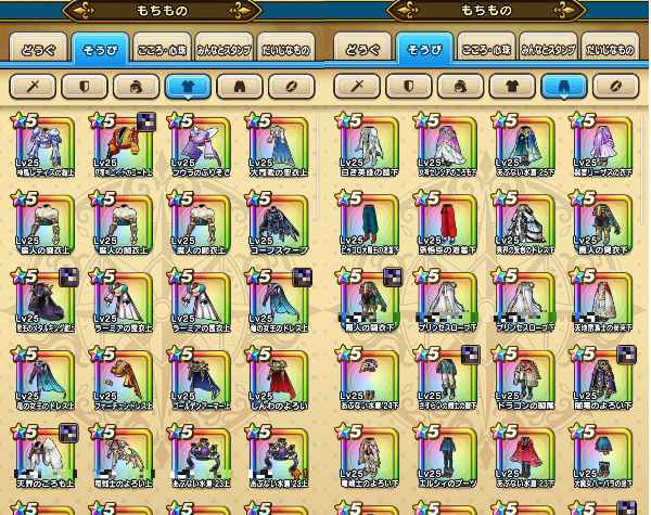 下記のようなそうびを所持しております。(一部抜粋)