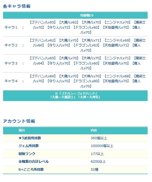 竜神王の杖・神鳥の翼斧・八竜神の剣など所持(ジェム10万個以上)
