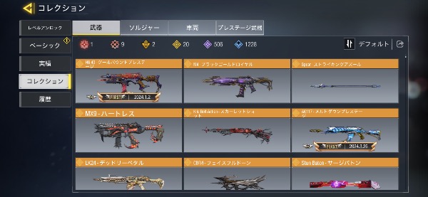 ミシック武器19所持、15種MAX。...