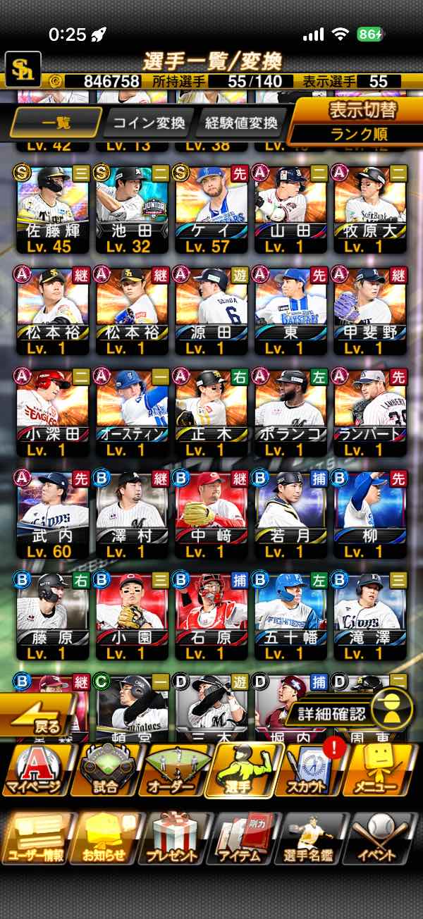 エナジー2500個+Sランク選手35...