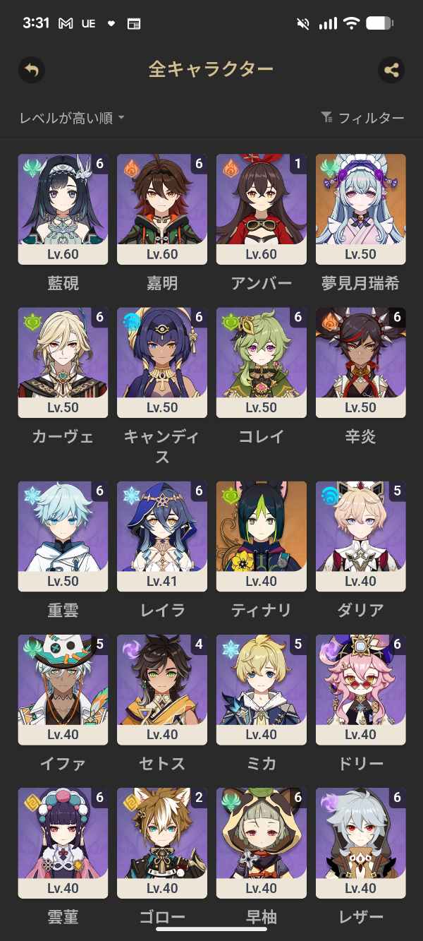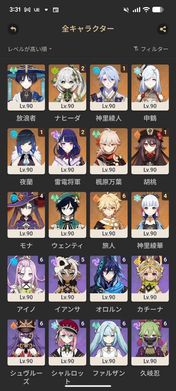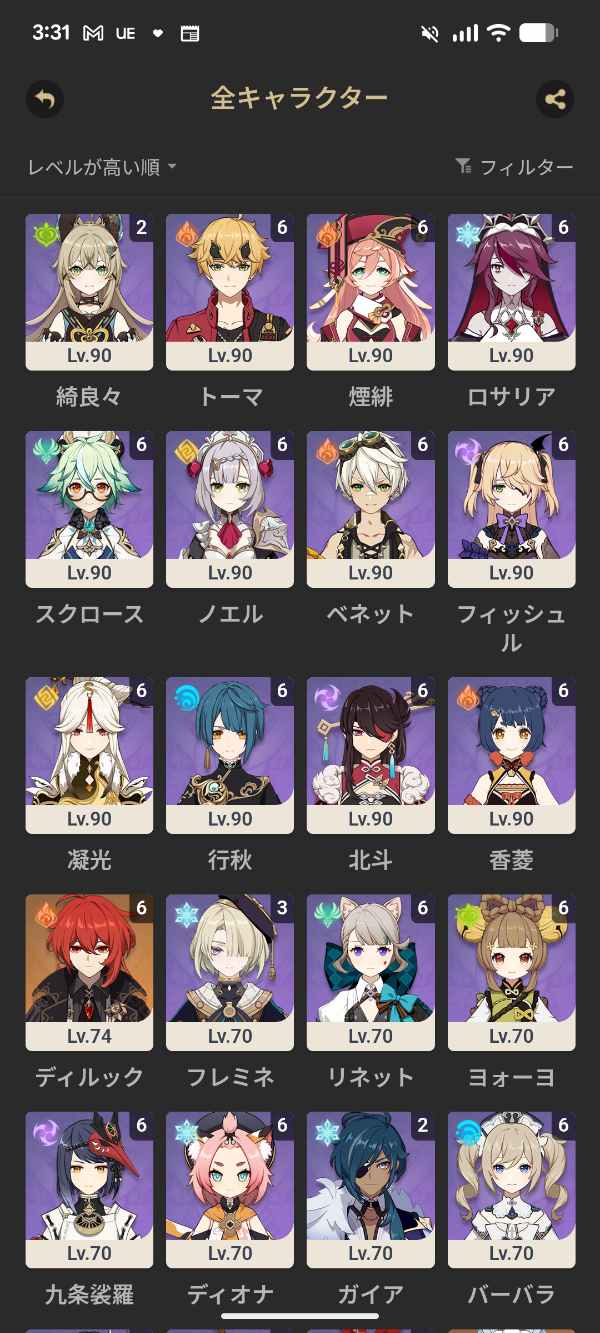 召使い完凸ナドクライキャラ全確保餅武器あり(1部キャラ推奨凸まで獲得済み)その他現環境最強pt複数可能