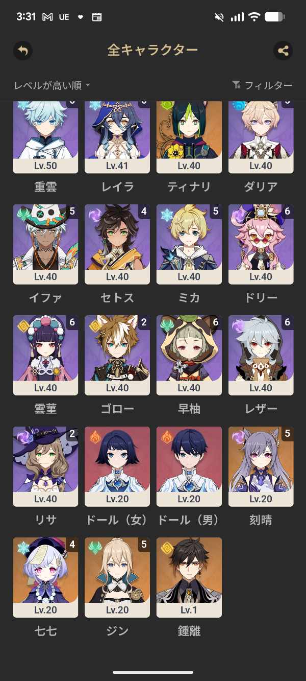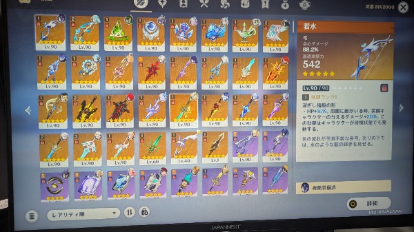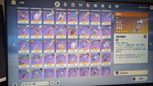 聖遺物の厳選状況も教えてもらえると幸いです。