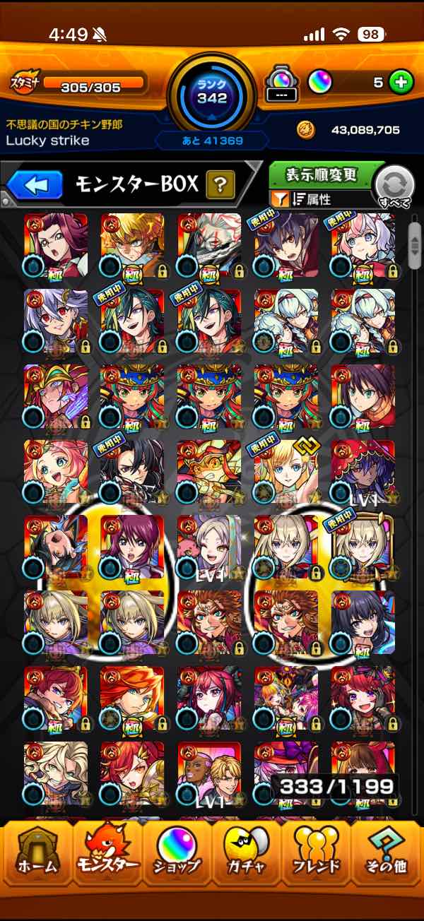 ガチャ限モンスター多数、運極多数